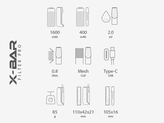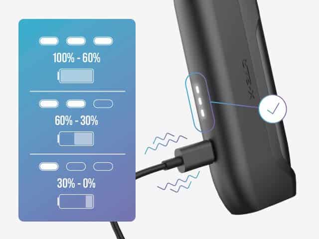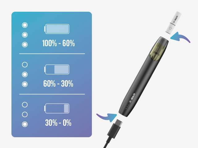 En plus de ces améliorations, la Filter Pro® V1.2 conserve ses caractéristiques distinctives d'origine, notamment une batterie robuste de 400 mAh et une généreuse capacité de pod rechargeable de 2,5 ml. Et avec son USB-C, la recharge n’a jamais été aussi rapide et pratique. Gardez un œil attentif sur les niveaux de votre batterie grâce aux trois petites LED sur chaque appareil, offrant une surveillance précise en un coup d'œil.